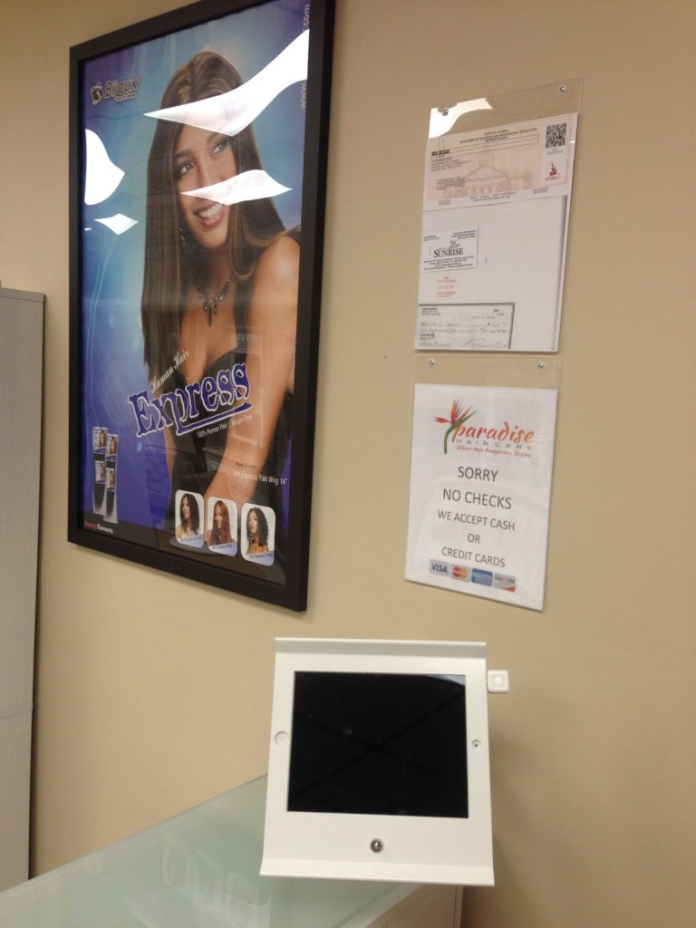Connect your iPad POS to a card reader and you’ll get a great combination for any business. Just look below and see for yourself how a hair salon upgraded their check out system with the Maclocks iPad POS. Not only does it look great it’s also the best iPad anti-theft device around.